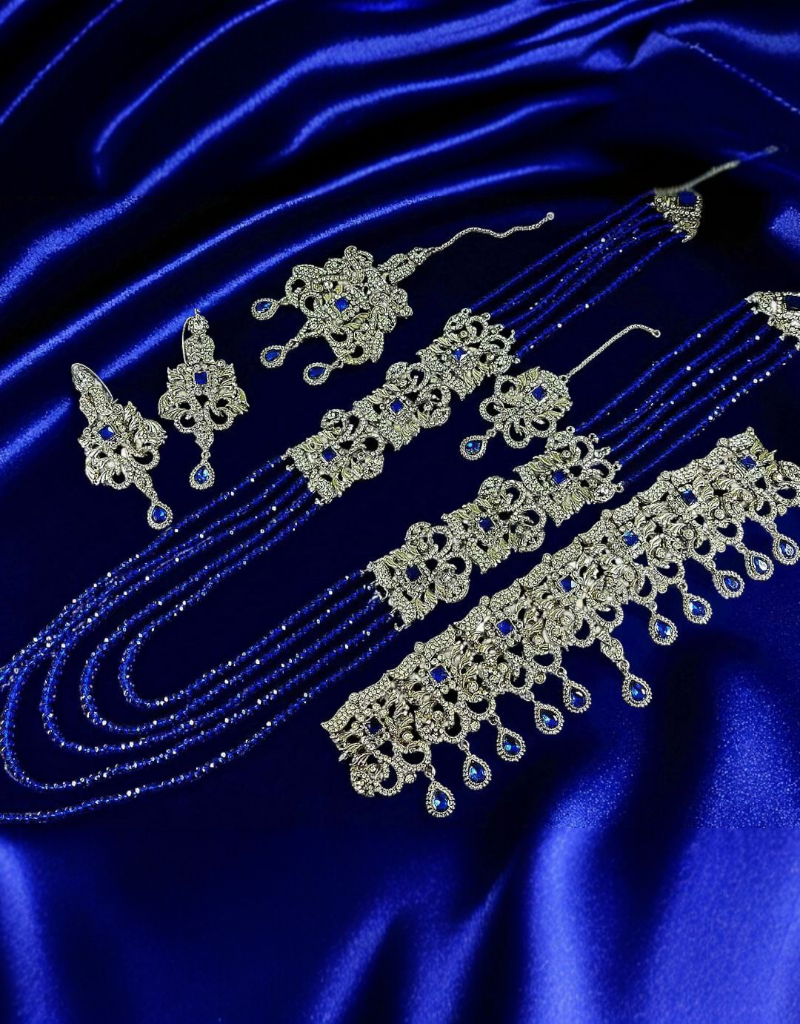 Beautiful Silver Polish Stone Studded MALA & Choker Set BRIDAL SET.
