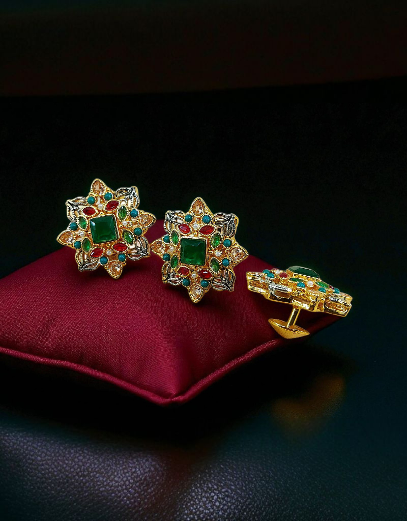 Beautiful Zircons and Semi Precious Stone Studded Egyptian 3 Pcs Buttons Set.