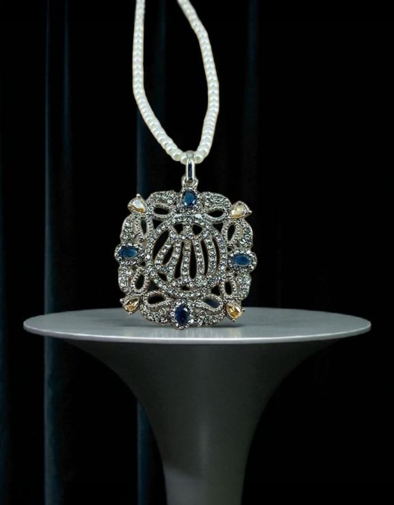 Beautiful Semi Precious Stone Studded Calligraphic PENDANT with Pearl Mala.