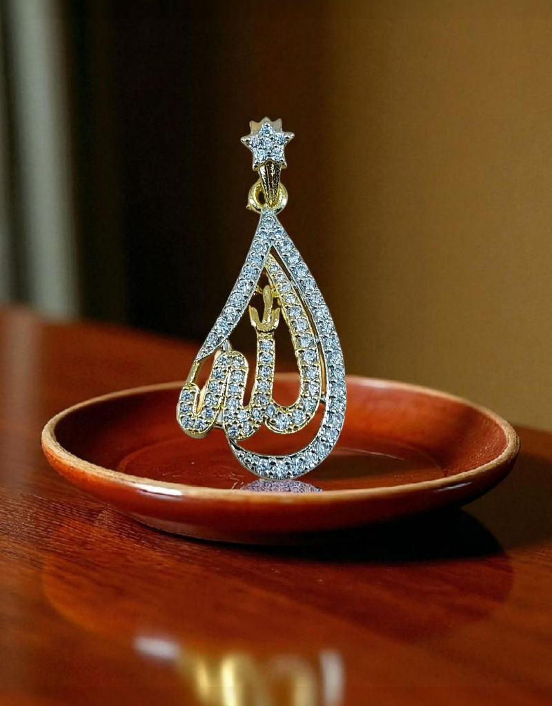 Beautiful & Delicate Zircons Supreme Quality Calligraphic Pendant. Pendant Size Approx 1.75 inches in length