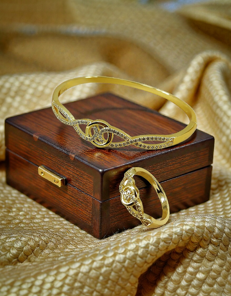 Beautiful and Delicate Zircons Stone Studded Bracelet with Matching Ring.