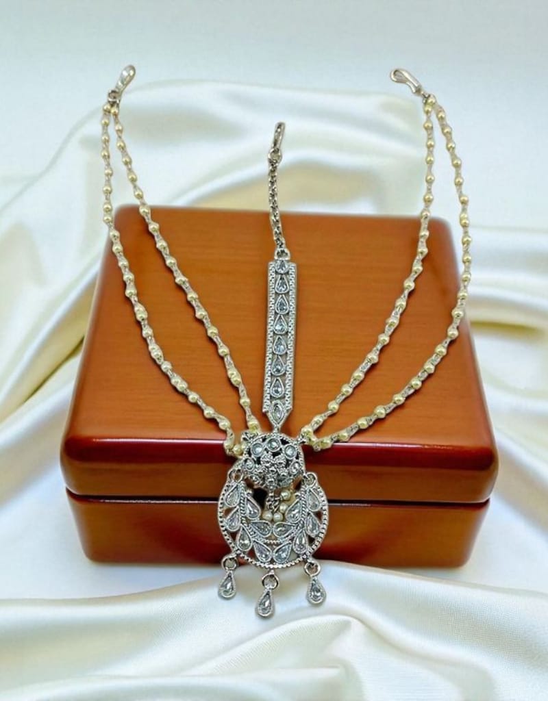 Beautiful Silver Polish Polki Stone Studded Traditional Design Matha Patti...