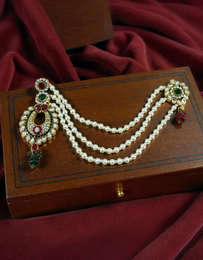 Beautiful Traditional Design Stone Studded Heavy Look Double Sided Bunch Matha Patti.