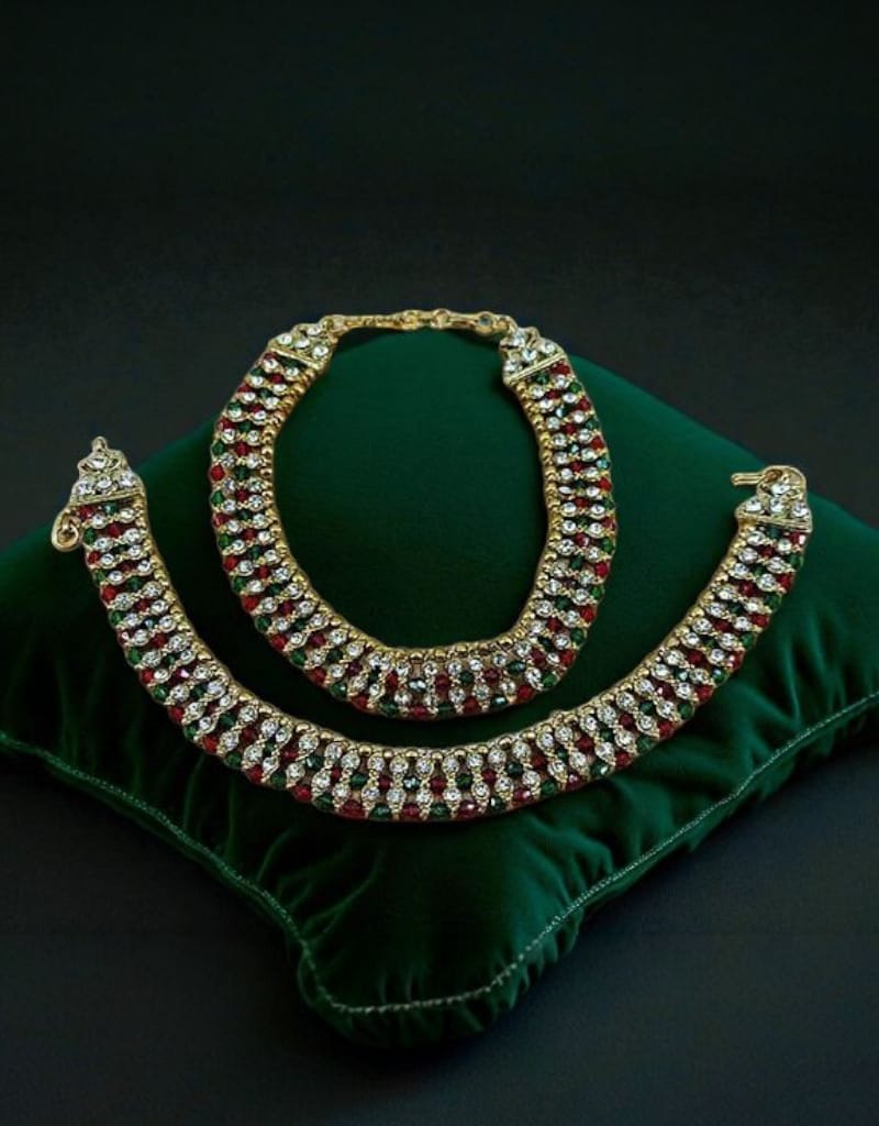 Beautiful Antique Polish Stone Studded Pair of Payal / Pazaib.
