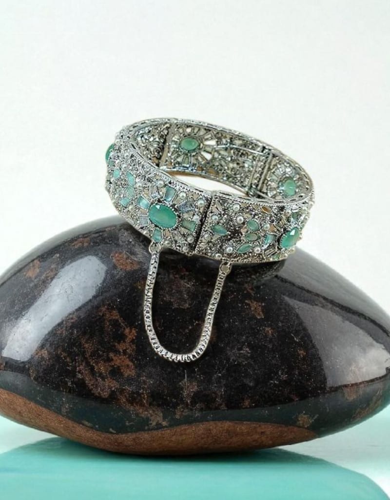Beautiful Silver Polish Zircons & Semi Precious Stone Studded 1 Piece Traditional Design Egytian Openable Bangle.